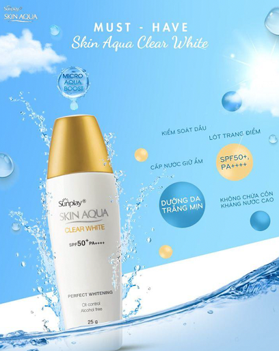 Sữa Chống Nắng Sunplay Skin Aqua Clear White SPF50+ PA++++ là dòng sản phẩm chống nắng ứng dụng công nghệ CHỐNG NẮNG – GIỮ ẨM đột phá từ Nhật Bản giúp chống nắng mạnh mẽ và bền bì trên da. Đồng thời hạn chế tình trạng mất nước và duy trì độ ẩm tối ưu.