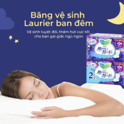 Băng vệ sinh ban đêm Laurier có cánh 30cm của Nhật Bản với công thức đột phá thiết kế siêu mỏng nhưng khả năng siêu thấm đến 200 lần và chống trào ngược giúp bạn có cảm giác thoải mái, dễ chịu khi ngủ trong những ngày đèn đỏ. Sản phẩm được sử dụng phổ biến tại Nhật Bản và ưa chuộng trên thị trường châu Á.