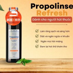 Nước súc miệng Propolinse Refresh là một loại nước súc miệng mới có tác dụng ngăn ngừa mùi khó chịu sau khi hút thuốc lá, với thiết kế màu đen sang chảnh Propolinse Refresh như sinh ra để dành cho những người hút thuốc, mang đến công dụng kháng khuẩn và đánh bật mùi hôi cũng như mảng bám ố vàng bám trên răng do khói thuốc mang lại.