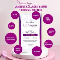 Nước uống Lamelux Collagen & N.M.N 100000mg được nghiên cứu và điều chế bởi tập đoàn Aishodo uy tín. Tinh chất cô đặc có hàm lượng dinh dưỡng cực cao, trong đó, collagen peptide lên đến 10.000mg mỗi gói, giúp nâng cơ, trẻ hóa da, xóa nếp nhăn. Bên cạnh đó N.M.N – kích hoạt gen trường thọ, cùng với nhiều thành phần: tổ yến, hyaluronic acid, nhau thai ngựa, elastin, ceramide, Vitamin C, chiết xuất trái cây,… Nước uống Lamelux Collagen hứa hẹn mang đến hiệu quả bất ngờ, cải thiện cả sức khỏe và làm đẹp da.
