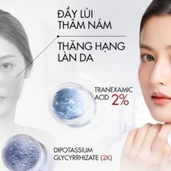 ● Tranexamic acid 2%: đây là một hoạt chất đã được chứng minh là có khả năng thẩm thấu vào dưới da, ức chế plasmin, giúp làm giảm sự hình thành của melanin gây nám, tàn nhang, đồi mồi.