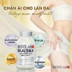 Viên uống trắng da Bestlab Gultax của Nhật đang làm mưa làm gió trên thị trường châu Á. Với công thức glutathione hàm lượng cao cùng N.M.N, ALA, bạch kim, viên uống hỗ trợ nâng tông da trắng hồng rạng rỡ, loại bỏ thâm sạm nám do UV hay thay đổi nội tiết, tăng độ đàn hồi da, làm chậm quá trình lão hóa, nếp nhăn,…