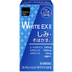 Viên uống trắng da White EX II Matsukiyo điều chế từ nguyên liệu tự nhiên nên bạn có thể hoàn toàn yên tâm khi sử dụng. Không dùng cho phụ nữ có thai hoặc đang cho con bú. Mỗi hộp viên uống Matsukiyo có 270 viên. Liều dùng người lớn trên 15 tuổi uống 3 viên/lần, 2 lần/ngày vào buổi sáng và tối.