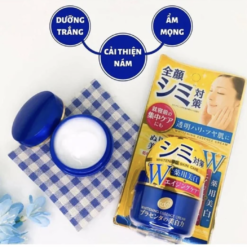 Kem dưỡng trắng da Meishoku Whitening Essence Cream 55g được nhiều cô gái Nhật Bản lựa chọn để dưỡng da mỗi ngày. Với thành phần giàu dưỡng chất được chiết xuất từ placenta, collagen, tinh chất hạt ý dĩ, dâu tằm, tinh chất đậu nành, cám gạo,… giúp nuôi dưỡng làn da trắng hồng rạng rỡ, tràn đầy sức sống, giảm thâm nám hiệu quả. Sản phẩm dành cho mọi loại da.