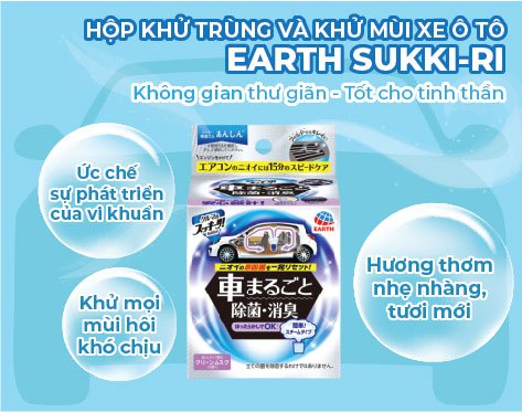 Sản phẩm hộp khử trùng và khử mùi xe ô tô Earth Sukki-Ri giúp ức chế sự phát triển của vi khuẩn, khử mùi hôi khó chịu và mang lại hương thơm nhẹ nhàng, tươi mới cho nội thất ô tô.