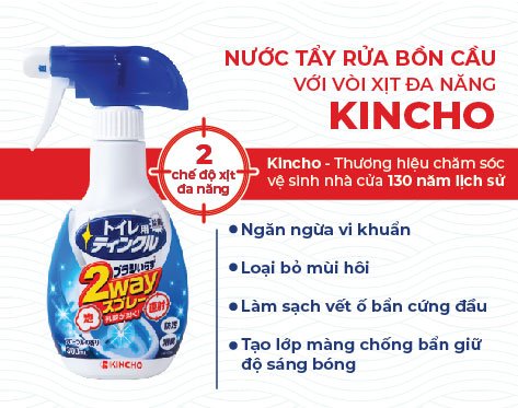 Sản phẩm với đầu xịt đa năng, có thể tạo ra tia xịt mạnh hoặc xịt tạo bọt, giúp làm sạch hiệu quả các vết bẩn và ố vàng cứng đầu trong bồn cầu, sàn nhà,…, đồng thời giúp ngăn ngừa sự phát triển của vi khuẩn và loại bỏ mùi hôi khó chịu ở những khu vực này.