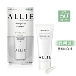 Allie có dạng gel, nhưng là gel lỏng, màu trắng đục, và tan nhanh, thấm nhanh vào da. Da sẽ có hiệu ứng glowy vừa phải, mà lại cảm giác lớp kcn lại mỏng mịn nên ko hề khó chịu. Da lên một tông nhẹ, vừa phải, ko bị vệt trắng, ko bị trắng bệch, ko bị bết dính. Khả năng chống nắng tối ưu với chỉ số SPF50+ PA++++ cao nhất trong vùng an toàn, bảo vệ da khỏi tia UVA và UVB, ngăn chặn nám, tàn nhang, đốm nâu.