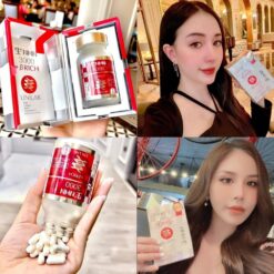 - Bảng thành phần còn được bổ sung thêm các dưỡng chất quý giá như nhau thai tươi cô đặc, biotin, collagen peptide, lá trà Pual giúp tăng hiệu quả chống oxy hóa, phòng chống ung thư và trẻ hoá làn da, kích thích tóc móng phát triển.