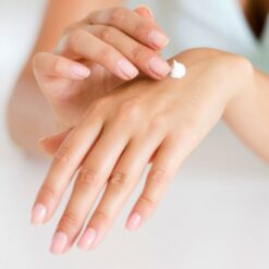 - Lấy một lượng kem dưỡng da Q10 vừa đủ chấm đều trên mu bàn tay và các ngón tay, sau đó dùng lòng bàn tay còn lại xoa đều khắp cho đến khi kem thấm không còn nhờn và trắng, tuần tự thực hiện với tay còn lại.