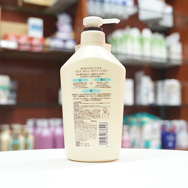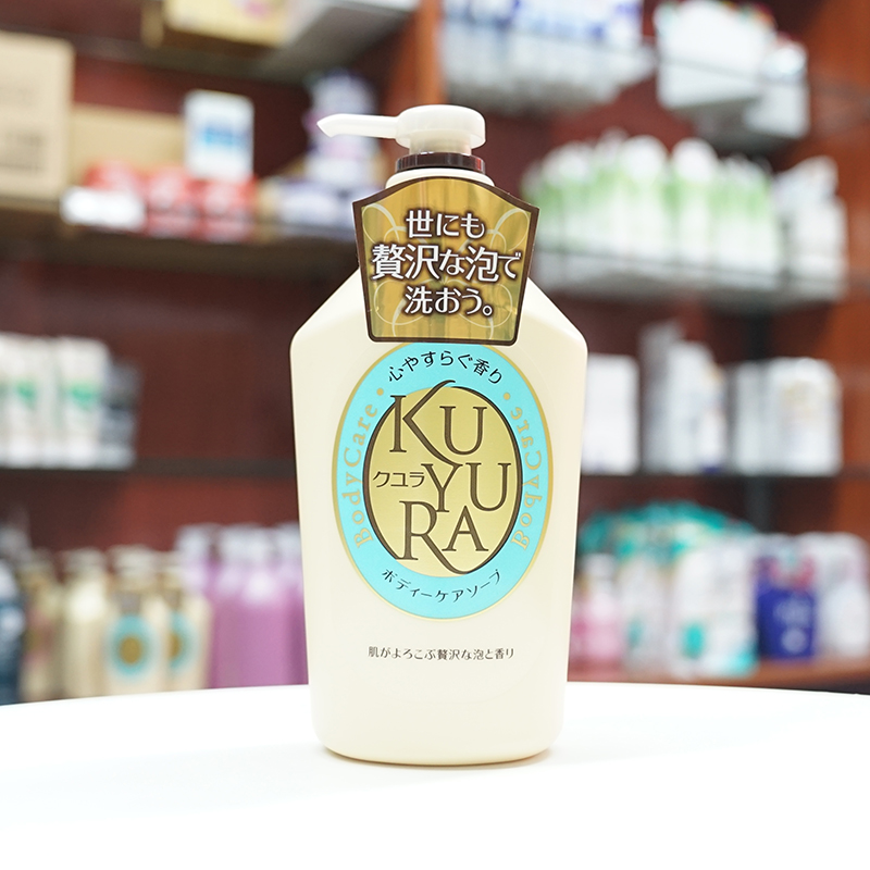 Sữa tắm Shiseido Kuyura 550ml Nhật Bản màu xanh chứa thành phần có nguồn gốc từ Amino Acid Derivative giúp làm sạch và làm sáng da kết hợp dầu thực vật giúp duy trì độ ẩm tự nhiên cho da mà không gây nhờn dính khó chịu. Phù hợp với mọi loại da và có khả năng lưu hương đến 8h.