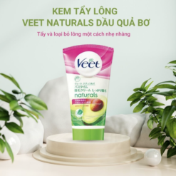 – Veet Naturals có chứa dầu bơ và dầu hạt nho, một thành phần dưỡng ẩm tự nhiên sẽ giữ cho làn da vùng tẩy lông mềm mại.