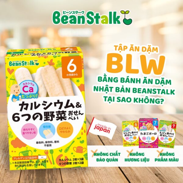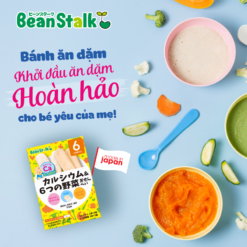 - Bánh gạo rong biển Hijiki và Aonori Beanstalk chứa 2 loại rong biển nổi tiếng Nhật Bản: rong Aonori và rong Hijiki cho hương vị thơm ngon và giàu khoáng chất, bổ canxi dồi dào cho bé, cân bằng hoàn hảo giữa 3 nhóm dinh dưỡng thiết yếu trong mỗi bữa ăn. Đồng thời mang đến đa dạng lựa chọn để bố mẹ có thể lựa chọn theo sở thích hương vị thêm phong phú bữa ăn dặm cho bé, tăng hứng thú cho con trong các bữa ăn hàng ngày.