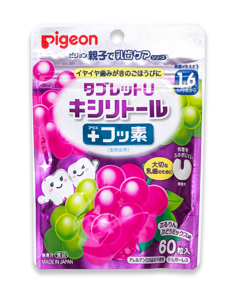Kẹo nhai Xylitol Fluorine Pigeon hương nho (60 viên) có tác dụng làm sạch răng, chống sâu răng, với chất xylitol giúp bảo vệ men răng của bé khỏe mạnh.