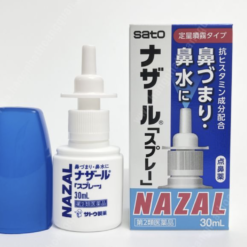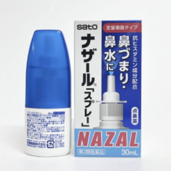 Xịt mũi Sato Nazal 30ml giúp làm giảm viêm mũi dị ứng gây ra bởi viêm xoang hoặc cảm cúm: Sổ mũi, nghẹt mũi, chảy nước mũi, hắt hơi liên tục, ngứa rát khó chịu. Xịt mũi Sato có thành phần Benzalkonium chloride: Có tác dụng diệt khuẩn, ức chế sự phát triển của vi khuẩn trong mũi. Thành phần Naphazoline hydrochloride trong xịt mũi giúp làm thông mũi, giảm sự tích tụ của chất nhầy, cải thiện tình trạng nghẹt mũi, khó thở.