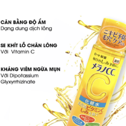 Nước hoa hồng Rohto Melano CC (170ml) – Nhật Bản với hàm lượng vitavimin C cao rất hiệu quả trong việc dưỡng da bởi tác dụng làm trắng, ức chế sản xuất melanin, xóa mờ tàn nhan, vết thâm mà tuyệt đối an toàn cho da, lành tính.