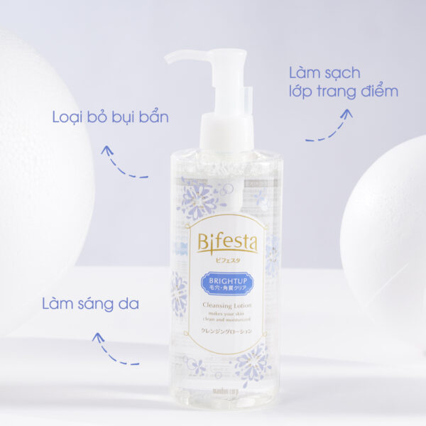 Nước tẩy trang cho da khô Bifesta Cleansing Lotion Brightup 300ml loại bỏ nhanh chóng cặn trang điểm và bụi bẩn mà không cần chà xát,.. Công thức giữ ẩm và dưỡng ẩm cho da đồ độ ẩm dồi dào và giúp da tươi sáng rạng rỡ.
